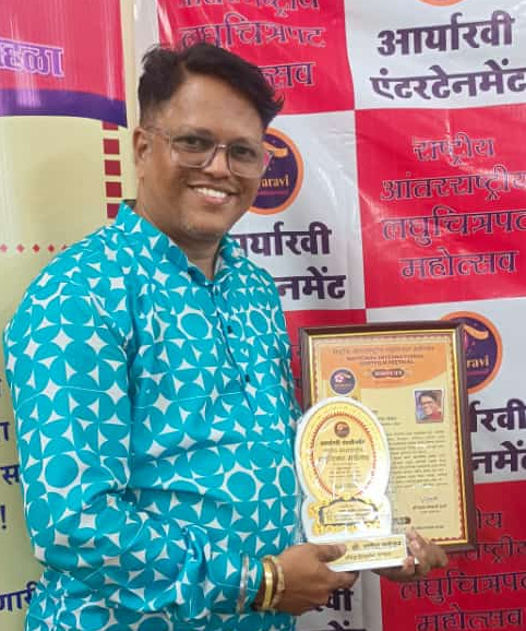 आर्यारवी एंटरटेनमेंट तर्फे व्हि पी आर प्रोडक्शन आणि ०९ एंटरटेनमेंट प्रोडक्शन तर्फे लेखक, दिग्दर्शक, माई मीडियाचे 24चे उप संपादक गणेश तळेकर यांना ” माझा बाबा ” या शॉटफिल्म साठी प्रबोधनात्मक विशेष लघुचित्रपट आणि नाटक – चित्रपट सृष्टीत चांगले काम करत आहे म्ह्णून ” सन्मान पत्र ” व “कला भूषण पुरस्कार” कवी विसुभाऊ बापट व के ई एम हॉस्पिटलचे डॉक्टर किशोर कुशाळे यांच्या हस्ते नुकताच देऊन गौरविण्यात आले, त्याबद्दल लेखक – दिग्दर्शक गणेश तळेकर यांनी आभार मानले.