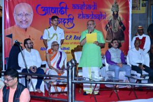 The Governor applauded the work of Annadan Sevikas, doctors from Suvarna Bharti Aarogya Kendra, and members of the Abhang recital troupe led by Pooja Gopalan.