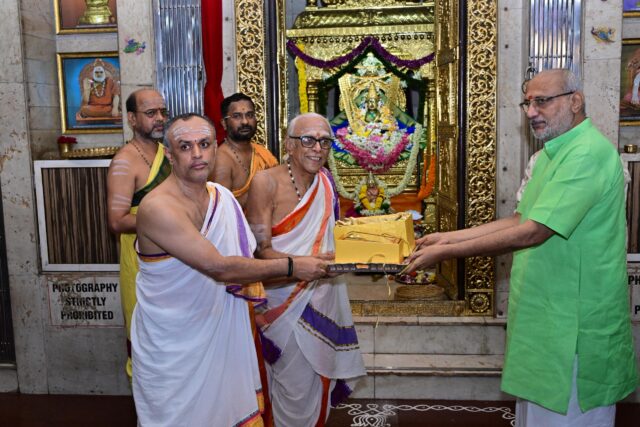श्री शृंगेरी शंकर शारदा पिठाचे जगद्गुरू शंकराचार्य श्री भारती तीर्थ यांच्या सन्यास दीक्षेचे यंदा पन्नासावे वर्ष असून त्यांच्या प्रेरणेने मंदिरातर्फे धार्मिक अनुष्ठानाशिवाय अन्नदान व वैद्यकीय सेवा देण्याचे कार्य केले जात असल्याचे त्यांनी सांगितले. मंदिरातर्फे गरजू रुग्णांसाठी वैद्यकीय सेवेकचे मोठे कार्य केले जात असून आतापर्यंत १ लाख लोकांनी त्याचा लाभ घेतला असल्याचे त्यांनी सांगितले.