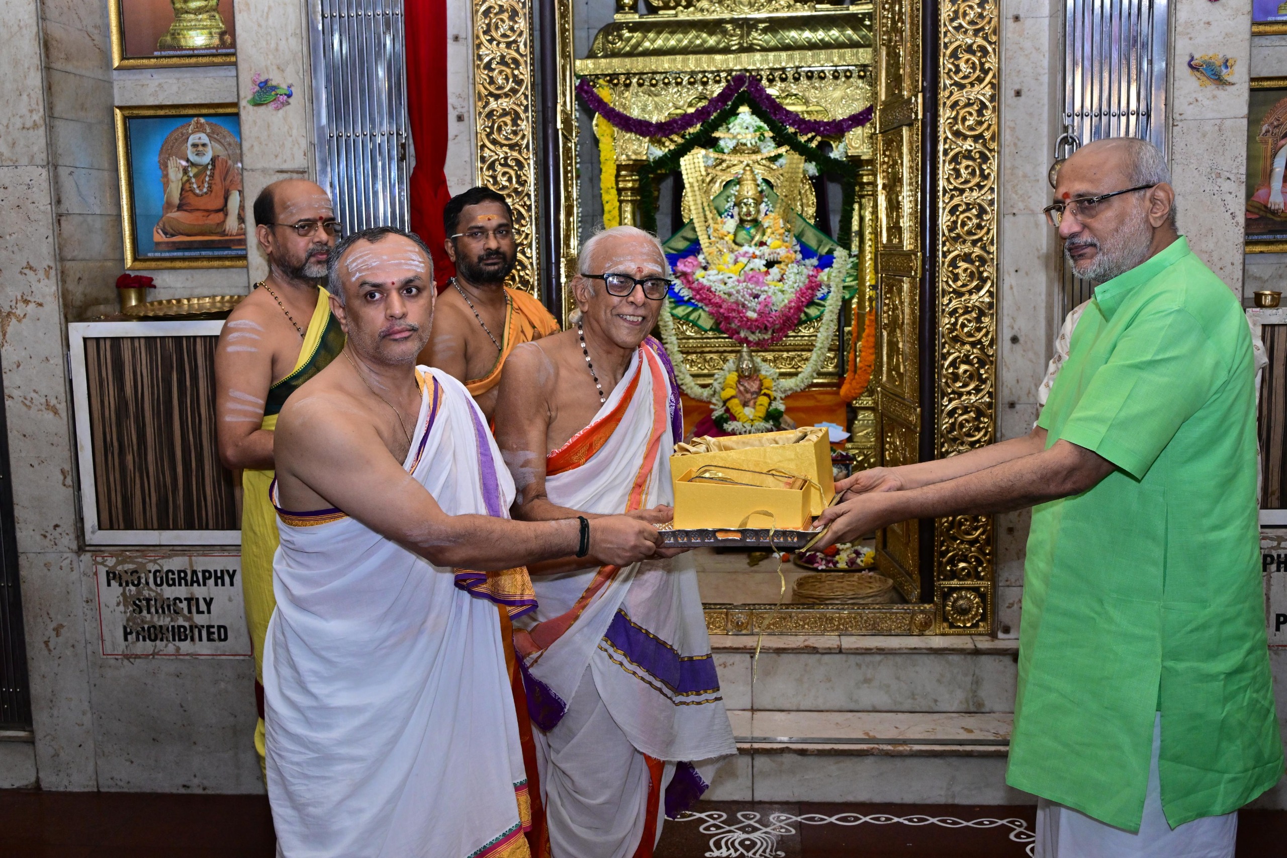 Manager of the Sri Sringeri Sharada Math Dr Muthukrishnan, Trustee Mohan Subramaniam, Convenor of Suvarna Bharati Aarogya Kendra Dr Kumaraswamy, Trustee of Juna Hanuman Mandir Subodh Acharya, Secretary to the Governor Dr Prashant Narnaware, Deputy Secretary S Ramamoorthy and devotees were present.