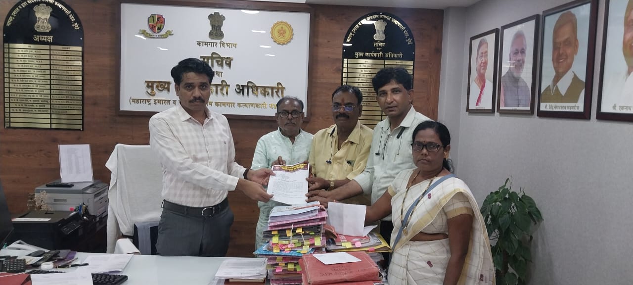कामगार सचिव यांना, मुंबई येथील कार्यालयात देण्यात आलेल्या निवेदनात, आपल्या अधिकाराखाली बांधकाम कामगारांना आधार देण्यासाठी, महाराष्ट्र शासन इमारत व इतर बांधकाम कल्याणकारी महामंडळामार्फत, विविध योजना राबविण्यात येत आहेत. परंतु या योजनांचा लाभ घेण्यासाठी काही अडचणी देखील निर्माण झालेले आहेत., त्यामुळे बांधकाम कामगारांना सदर योजनेपासून वंचित राहण्याची परिस्थिती निर्माण झाली आहे., या समस्या दूर करून बांधकाम कामगारांना न्याय मिळवून द्यावे असे सदर निवेदनात नमूद करण्यात आले,
