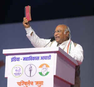 बीकेसी मैदानावर इंडिया महाविकास आघाडीच्या परिवर्तन सभेत खर्गे बोलत होते, ते पुढे म्हणाले की, नरेंद्र मोदी नेहमी प्रश्न विचारतात की, ७० वर्षात काँग्रेसने काय केले? काँग्रेसने लोकशाही व संविधान वाचवले नसते तर नरेंद्र मोदी देशाचे पंतप्रधान कधीच झाले नसते. मोदींची गॅरंटी खोटे बोलणे आहे. १५ लाख रुपये देणार, दरवर्षी २ कोटी नोकऱ्या देणार, शेतकऱ्यांचे उत्पन्न दुप्पट करु असे म्हणाले पण मोदींनी यातील काहीही केले नाही. काँग्रेस आघाडीचे सरकार आले तर तुमच्या दोन एकर जमिनीतून तर एक एकर जमीन मुस्लीमांना देतील, दोन म्हशी असतील तर त्यातील एक म्हैस मुस्लीमांना देतील ही पंतप्रधानाची भाषा आहे का? ज्या दिवशी मुस्लीमांच्या विरोधात बोलेन त्या दिवशी सार्वजनिक जिवनातून निवृत्त होईन म्हणाले व दुसऱ्याच दिवशी हिंदू मुस्लीमावरच बोलले. नरेंद्र मोदी एससी, एसटी, मागास समाजाला काहीही देऊ इच्छित नाहीत. ३० लाख सरकारी पदे रिक्त आहेत पण मोदींनी जागा भरल्या नाहीत. महागाई, बेरोजगारीवर बोलत नाहीत. नरेंद्र मोदी पुन्हा सत्तेत येणार नाहीत तर इंडिया आघाडी ३०० जागा जिंकून सत्तेत येईल असा विश्वासही खर्गे यांनी व्यक्त केला.