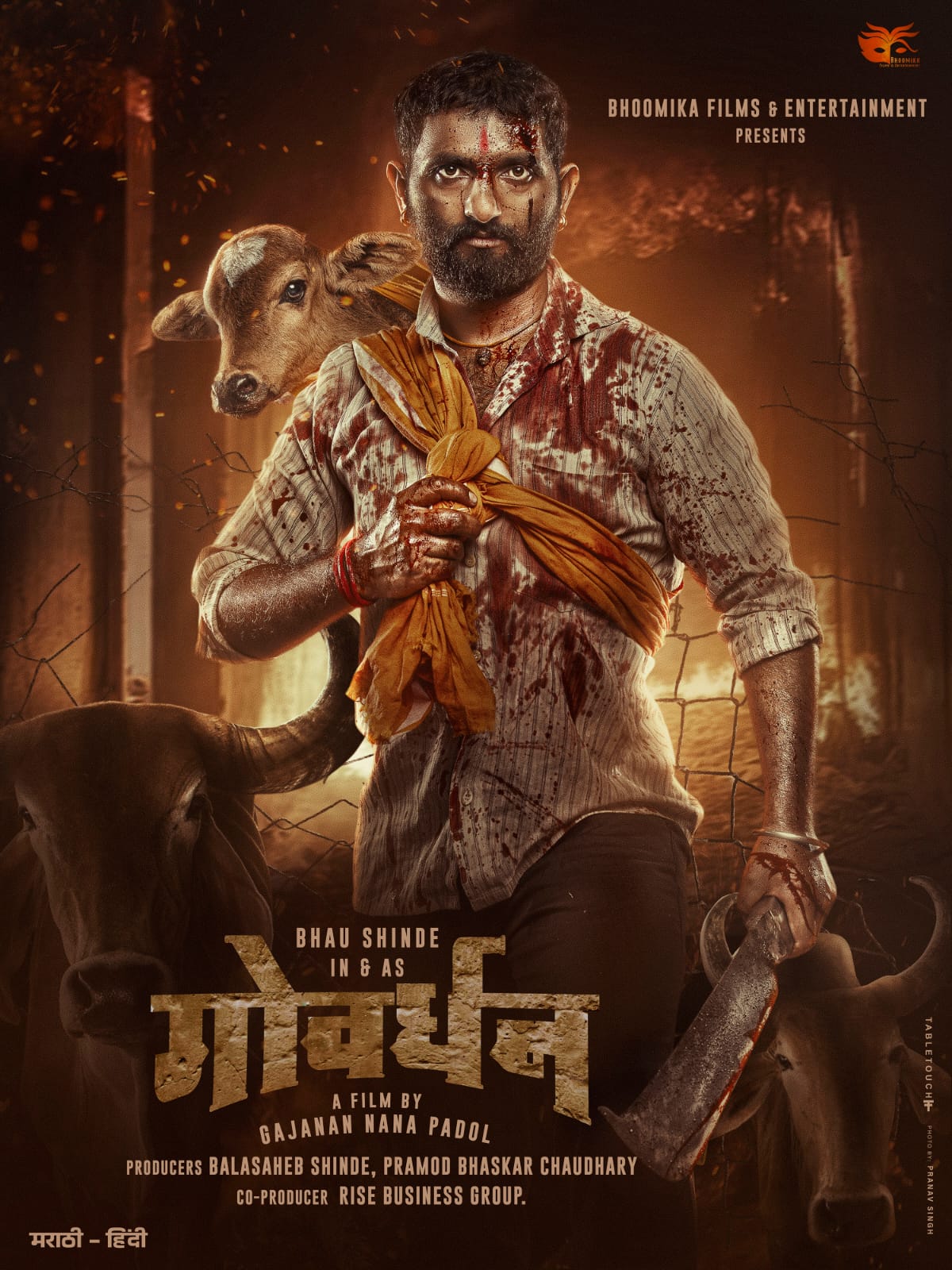 भूमिका फिल्म्स अ‍ॅण्ड एन्टरटेन्मेंट या बॅनरअंतर्गत बाळासाहेब शिंदे आणि प्रमोद भास्कर चौधरी यांनी ‘गोवर्धन’ या चित्रपटाची निर्मिती केली असून राईज बिझनेस ग्रुप चित्रपटाचे सहनिर्माते आहेत. ‘रौंदळ’ या बहुचर्चित चित्रपटानंतर भाऊसाहेबचा ‘गोवर्धन’ हा आगामी अ‍ॅक्शनपटही मराठीसह हिंदीतही बनवण्यात येणार असून दिग्दर्शक गजानन नाना पडोळ या चित्रपटाचे दिग्दर्शन करणार आहेत. गजानन नाना पडोळ यांनी यापूर्वी ‘रौंदळ’चे यशस्वी दिग्दर्शन केले होते. ‘गोवर्धन’ या चित्रपटाचं नवं कोरं पोस्टर नुकतंच रिलीज करण्यात आलं आहे. या पोस्टरवर गोवर्धनच्या भूमिकेत भाऊसाहेब दिसणार असल्याचं लिहिलं आहे. पोस्टरवरील भाऊचा अँग्री यंग मॅनसारखा लूक लक्ष वेधून घेतो. भाऊसाहेबने नेहमीच आपल्या मातीतील सिनेमे बनवण्याला प्राधान्य दिलं आहे. ‘गोवर्धन’ हा चित्रपटही त्याला अपवाद नाही. पोस्टर पाहिल्यावर याची खात्री पटते. या चित्रपटात भाऊसाहेबचे गायी-वासरांचं रक्षण करणाऱ्या ‘गोवर्धन’चं रूप पाहायला मिळणार आहे. वासराला पाठीला बांधून खलनायकाला कंठस्नान घालण्यासाठी सज्ज झालेला नायक ‘गोवर्धन’च्या पोस्टरवर दिसतो. रक्तानं माखलेला शर्ट, कपाळाला टिळा आणि जखम, वाढलेली दाढी-मिशी, पाठीला बांधलेलं गायीचं वासरू, डाव्या हातात शस्त्र असा ‘गोवर्धन’चा लूक पोस्टरवर पाहायला मिळतो. याखेरीज दोन गायीसुद्धा पोस्टरवर आहेत. हे सर्व पाहिल्यावर या चित्रपटाच्या निमित्ताने भाऊसाहेब महाराष्ट्रातील एका ज्वलंत प्रश्नाला वाचा फोडण्यासाठी सज्ज झाल्याचं जाणवतं.