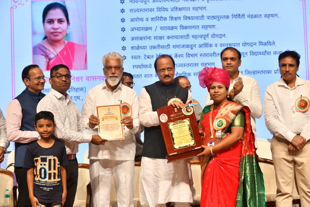 उपमुख्यमंत्री अजित पवार यांच्या हस्ते क्रांतीज्योती सावित्रीमाई फुले राज्य शिक्षक गौरव पुरस्कार वितरित करण्यात आले. एनसीपीएच्या टाटा थिएटर मध्ये झालेल्या या समारंभात राज्यातील १११ गुणवंत शिक्षकांचा यावेळी सत्कार करण्यात आला. विधानसभा अध्यक्ष ॲड.राहुल नार्वेकर, शालेय शिक्षण मंत्री दादाजी भुसे, राज्यमंत्री डॉ.पंकज भोयर, आमदार ज.मो.अभ्यंकर, ज्ञानेश्वर म्हात्रे, मनीषा कायंदे, शालेय शिक्षण विभागाचे प्रधान सचिव रणजित सिंह देओल, शिक्षण आयुक्त सचिंद्रप्रताप सिंह यांच्यासह पुरस्कारप्राप्त शिक्षक आणि त्यांचे कुटुंबीय यावेळी उपस्थित होते.