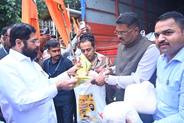 शिवसेनेच्या वतीने मराठवाड्यातील अतिवृष्टीग्रस्त नागरिकांच्या मदतीसाठी आज तातडीने मदत पाठवण्यात आली. शिवसेनेचे मुंबईतील कार्यालय ‘बाळासाहेब भवन’ येथून हे मदतीच्या ट्रकला उपमुख्यमंत्री एकनाथ शिंदे यांच्या हस्ते भगवा झेंडा दाखवून ही मदत धाराशिव जिल्ह्याकडे रवाना करण्यात आली. यात शिवसेना वैद्यकीय मदत कक्षाकडून पाठवण्यात येणारं डॉक्टरांचे पथक, जीवनावश्यक वस्तूंची किट्स, इतर घरात लागणाऱ्या वस्तू आणि औषधांचा समावेश असेल. असे ५० ते ६० ट्रक अतिवृष्टीग्रस्त भागात पाठवण्यात येणार असल्याचे ,शिंदे यांनी यावेळी बोलताना स्पष्ट केले.
