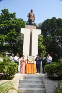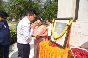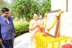 महाराष्ट्राचे माजी मुख्यमंत्री आणि सहकार महर्षी स्व. वसंतदादा पाटील यांच्या जयंतीनिमित्त आज गुरुवार, दिनांक १३ नोव्हेंबर २०२५ रोजी विधान भवन परिसरातील त्यांच्या पुतळ्यास महाराष्ट्र विधान परिषदेच्या उपसभापती ना.डॉ. नीलम गोऱ्हे यांनी पुष्पहार व गुलाबपुष्प अर्पण करून अभिवादन केले.