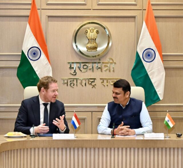 ‘वर्षा’ मुख्यमंत्र्यांच्या निवासस्थानी झालेल्या भेटीत उद्योग विभाग सचिव पी. अनबलगन, सचिव आणि राजशिष्टाचार विभागाचे प्रमुख डॉ. राजेश गवांदे, मुख्यमंत्र्यांचे गुंतवणूक व धोरण विषयक सल्लागार कौस्तुभ धवसे, महाराष्ट्र सागरी मंडळाचे मुख्य कार्यकारी अधिकारी प्रदीप पी. उपस्थित होते. डच शिष्टमंडळात राजदूत मोरिसा जेरार्ड्स, वाणिज्य दूतावास जनरल नबिल तौआती उपस्थित होते.
