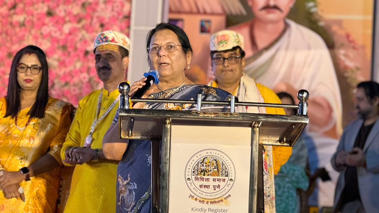 पुणे.दि. २५: मिथिला समाज संस्था, पुणे यांच्या वतीने लोहगाव येथील त्रिमूर्ती लॉन्समध्ये ‘आंतरराष्ट्रीय मिथिला महोत्सव २०२६’ हा भव्य कार्यक्रम दि. २४ जानेवारी रोजी आयोजित करण्यात आला. विधान परिषदेच्या उपसभापती डॉ. नीलम गोऱ्हे या कार्यक्रमाच्या प्रमुख अतिथी म्हणून उपस्थित होत्या. वसंत पंचमीच्या शुभ मुहूर्तावर माँ सरस्वती आणि माँ जानकीच्या पूजनाने कार्यक्रमाची सुरुवात झाली.