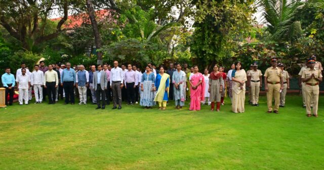 राज्यपालांचे सहसचिव एस राममूर्ती, परिवार प्रबंधक डॉ निशिकांत देशपांडे यांसह लोकभवनातील अधिकारी, कर्मचारी व पोलीस अधिकारी व अंमलदार तसेच सार्वजनिक बांधकाम खात्यातील अधिकारी व कर्मचारी यांनी यावेळी दोन मिनिटे मौन पाळून हुतात्म्यांचे स्मरण केले.