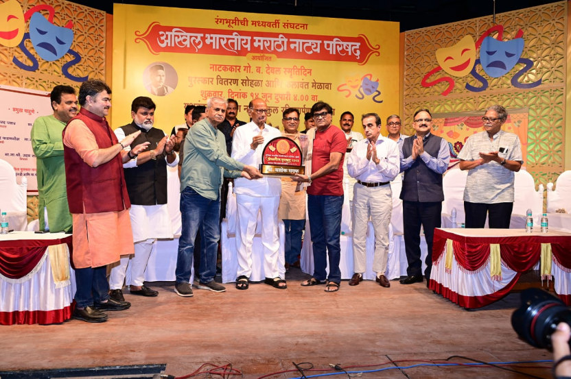 ‘अखिल भारतीय मराठी नाट्य परिषदे’चे पुरस्कार रोहिणी हट्टंगडी व अशोक सराफ यांना जीवनगौरव पुरस्कार तहहयात विश्वस्त शरद पवार यांच्या हस्ते प्रदान.