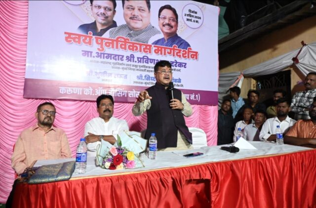 मुंबई – मुंबईतील मध्यमवर्गीय मराठी माणूस जो वसई, विरार, नालासोपाऱ्याला जाणार होता, तो आता स्वयं पुनर्विकासाच्या माध्यमातून मुंबईतच राहणार आहे, असा विश्वास मुंबई जिल्हा बँकेचे अध्यक्ष, महाराष्ट्र गृहनिर्माण स्वयं/समूह पुनर्विकास प्राधिकरणाचे अध्यक्ष आमदार प्रवीण दरेकर यांनी व्यक्त केला. ते विक्रोळी (पूर्व) टागोर नगर ग्रुप १ येथील करुणा को-ऑपरेटिव्ह हाऊसिंग सोसायटीतर्फे गुरुवारी आयोजित केलेल्या स्वयं पुनर्विकासावरिल मार्गदर्शन शिबिरात बोलत होते.