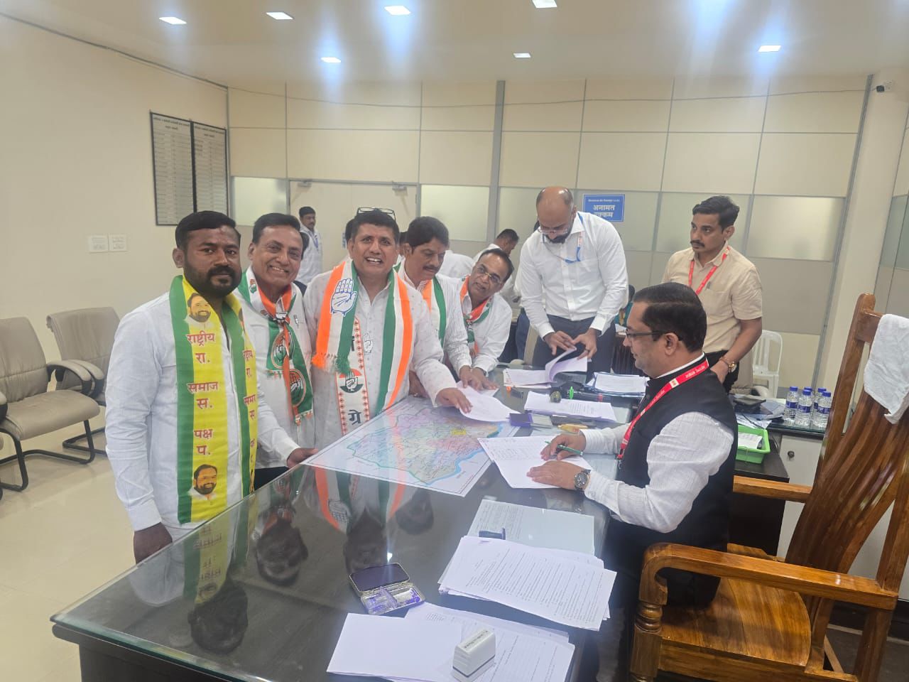 बारामती विधानसभा मतदारसंघ पोटनिवडणुकीसाठी काँग्रेस राष्ट्रीय समाज पक्ष वंचित बहुजन आघाडीचे अधिकृत उमेदवार म्हणून महाराष्ट्र प्रदेश काँग्रेस कमिटीचे सचिव ॲड. आकाश विजयराव मोरे यांनी आज आपला उमेदवारी अर्ज दाखल केला. यावेळी पुणे ग्रामीण जिल्हा काँग्रेस कमिटीचे अध्यक्ष श्रीरंग चव्हाण, कार्याध्यक्ष लहू अण्णा निवंगुने, बारामती शहर काँग्रेस अध्यक्ष अशोक इंगुले, सरचिटणीस राहुल वाबळे, कमलाकर सातव, गोविंद मिरगे, पुणे जिल्हा युवक काँग्रेसचे अध्यक्ष वीरधवल गाडे, राष्ट्रीय समाज पक्षाचे जिल्हाध्यक्ष किरण गोपणे, नगरसेवक अमोल सातकर, यांच्यासह काँग्रेस, रासप व वंचित आघाडीचे पुणे जिल्ह्यातील सर्व प्रमुख पदाधिकारी, तालुकाध्यक्ष मोठ्या संख्येने उपस्थित होते.