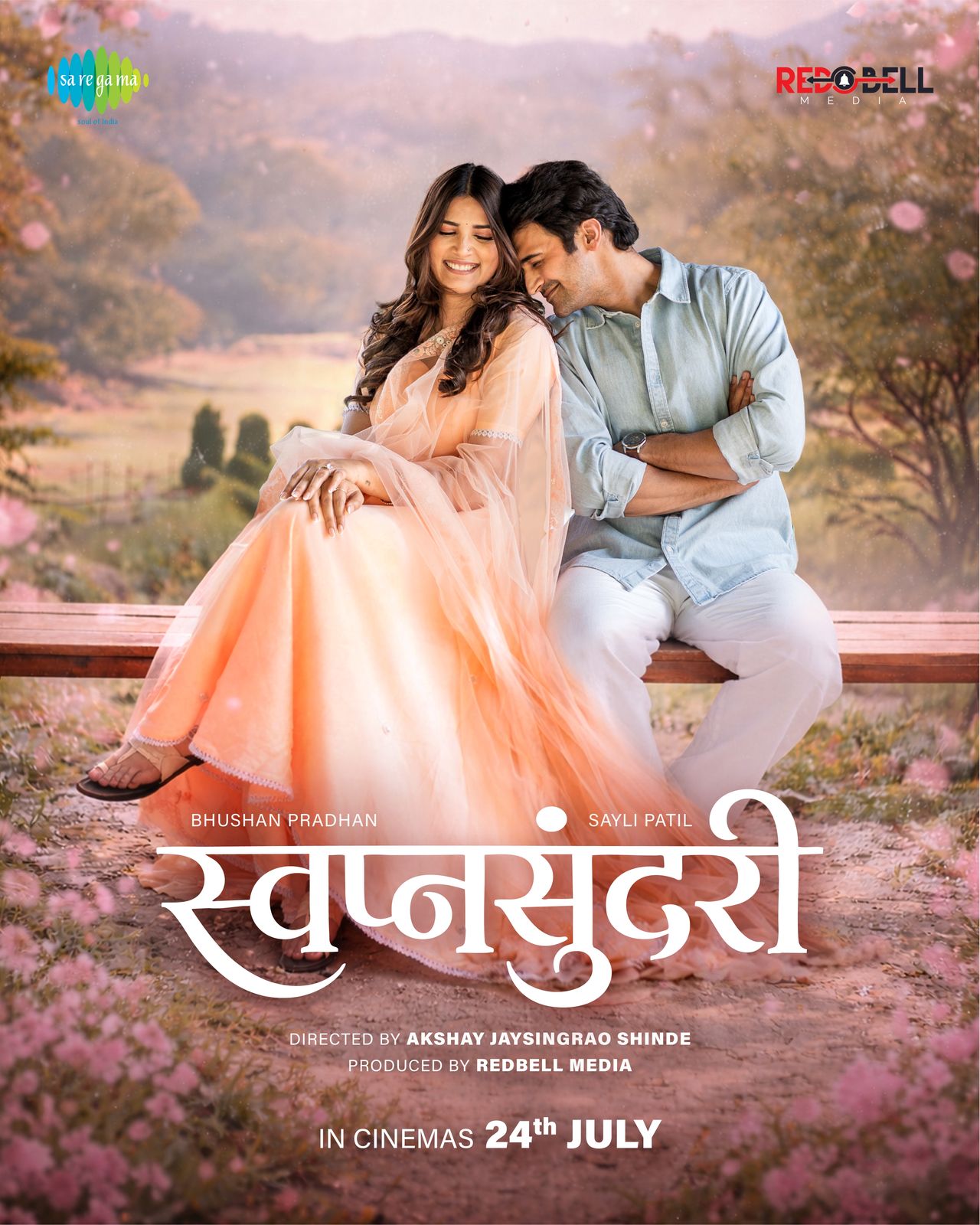 त्याच्या चित्रपटाचे पोस्टर समोर आले असून त्यामध्ये भूषण प्रधान आणि सायली पाटील यांची सुंदर केमिस्ट्री पाहायला मिळते. निसर्गाच्या सान्निध्यात एका निवांत ठिकाणी बसलेली ही जोडी, एकमेकांच्या सहवासात हरवलेली दिसते. सायली पाटील पारंपरिक वेशात अत्यंत मोहक दिसत असून, भूषण प्रधान तिच्याकडे प्रेमाने पाहाताना दिसतो. पोस्टरमधील संपुर्ण मांडणी एक स्वप्नवत आणि भावनांनी भरलेला अनुभव देणारी आहे. रेडबेल मीडिया निर्मित या चित्रपटाचे दिग्दर्शन अक्षय जयसिंगराव शिंदे यांनी केले आहे.