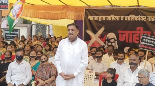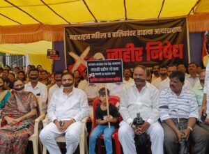 इस्लामपूर :- राज्यभरात महिलांवर होणाऱ्या अत्याचारच्या घटना तसेच बदलापूरमधील शाळेत चिमुकलींवर झालेल्या अत्याचाराच्या निषेधार्थ आज राज्यभरात महाविकास आघाडी आणि इतर पक्षांतर्फे आंदोलन करण्यात आले. राष्ट्रवादी काँग्रेस पार्टी शरदचंद्र पवार पक्षाचे प्रदेशाध्यक्ष जयंत पाटील यांनी सांगली जिल्ह्य़ातील वाळवा तहसील कार्यालयासमोरील छत्रपती शिवाजी महाराज आणि डॉ. बाबासाहेब आंबेडकर यांच्या पुतळ्याच्या समोर बसून तोंडाला काळी फित बांधून निषेध केला.