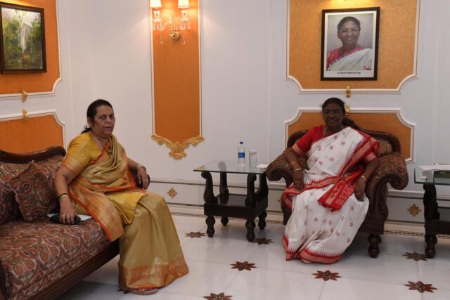 *मुंबई, ४ सप्टेंबर* – भारताच्या राष्ट्रपती सन्माननीय श्रीमती द्रोपदी मुर्मु यांची, विधान परिषदेच्या उपसभापती डॉ.नीलम गोऱ्हे यांनी मुंबईतील राजभवन येथे भेट घेतली.यावेळी डॉ.गोऱ्हे यांनी राष्ट्रपती यांना प्रत्यक्ष भेटून काही मुद्द्यांचे निवेदन देखील सादर केले आहे.