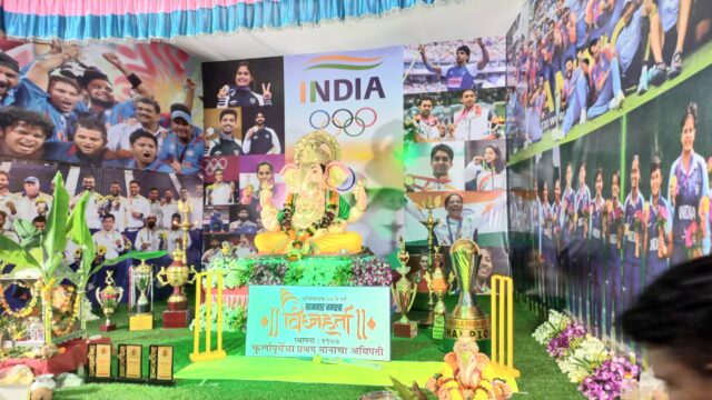 *मोबाईल सोडा, मैदानावर या ; सार्वजनिक गणेशोत्सव सजावटीतून दिल्या कानपिचक्या. मुंबई, आजकाल मोबाईल गेमच्या विळख्यात तरुणांपासून ते लहान मुले अडकली आहेत त्यामुळे मैदानी खेळांकडे दुर्लक्ष होत आहे. तरुणांनी व लहान मुलांनी मैदानी खेळाकडे आकर्षित व्हावे व एक धाव आरोग्यासाठी असा मौलिक संदेश देणारी संकल्पना कुर्ला कामगार नगर सार्वजनिक गणेशोत्सवात साकारण्यात आली आहे . या सजावटीमध्ये क्रिकेट , फुटबॉल या खेळांचे देखावे करण्यात आले आहेत. जेणेकरुन तरुण व लहान मुले मोबाईल गेमच्या विळख्यातून बाहेर पडून मैदानी खेळाला प्राधान्य देतील, अशी अपेक्षा व्यक्त करण्यात आली आहे. सिनियर क्रिकेट क्लबचे विश्वस्त सुधीर गावडे, गजानन वाविकर , राजू देसाई, नयन तळवडेकर तसेच उत्सव समिती चे सिध्दार्थ कारंडे, पुरुषोत्तम पवळे, निखिल तारकर, प्रथमेश तारकर, रोशन देसाई, ओंकार पाचलग, अमोल परब, प्रथमेश तारकर, गौरव परब , उमेश सावंत या तरुणांनी अपार मेहनतीने हा देखावा साकार केला आहे. तसेच विविध क्रीडा स्पर्धा जिंकलेले चषकही या सजावटीत मांडण्यात आले आहेत. मोबाईल मुळे झपाटलेल्या पीढीच्या डोळ्यात झणझणीत अंजन या सजावटीने घातले आहे.*