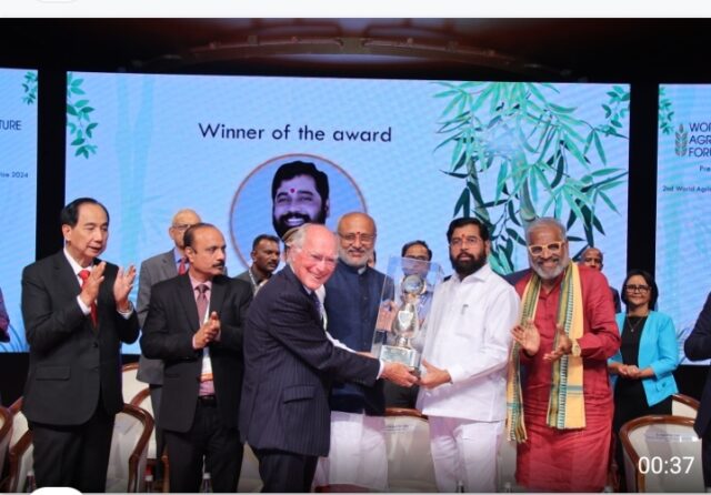 वर्ल्ड ॲग्रीकल्चर फोरमचा जागतिक कृषी पुरस्कार हा महाराष्ट्रातील राबणाऱ्या शेतकऱ्यांना अर्पण करत असल्याचे नमूद करून महाराष्ट्राला शेतीच्या क्षेत्रातही पहिल्या क्रमांकाचे राज्य बनविण्यासाठी प्रयत्नशील आहोत, अशी ग्वाही मुख्यमंत्री श्री. शिंदे यांनी यावेळी दिली.