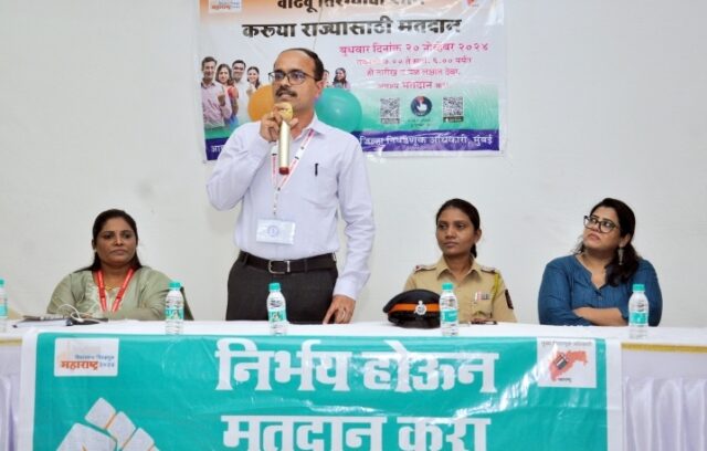 मतदान जनजागृतीच्या या कार्यक्रमास “स्वीप” चे समन्वय अधिकारी विजयकुमार सूर्यवंशी, मुंबादेवी विधानसभा मतदारसंघाचे सहायक निवडणूक निर्णय अधिकारी पल्लवी तभाने, सहायक निवडणूक निर्णय अधिकारी स्मिता सावंत, अपने आप स्वयंसेवी संस्थेच्या कार्यकारी संचालक अभिलाषा रावत, नागपाडा पोलीस ठाण्याचे पोलीस निरीक्षक यशवंत बारवकर, प्रसिध्दीमाध्यम कक्षाच्या समन्वय अधिकारी काशीबाई थोरात आदी उपस्थित होते.