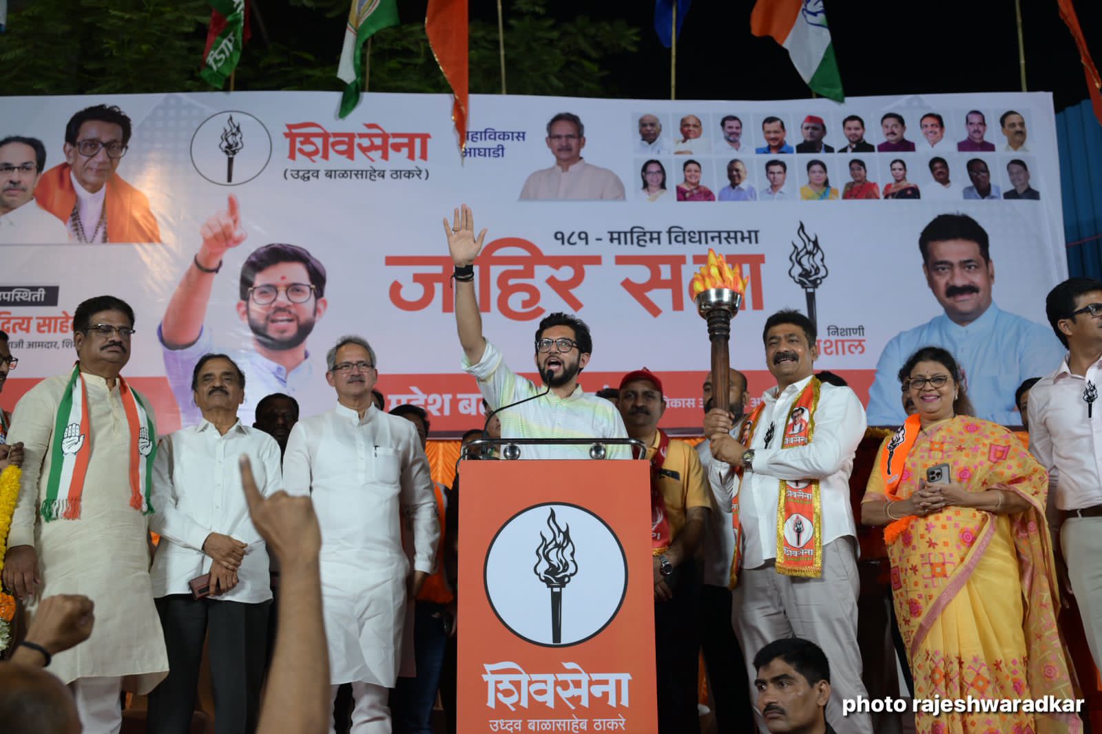 शिवसेना उद्धव बाळासाहेब ठाकरे पक्षाचे माहिम विधानसभेचे उमेदवार महेश सावंत यांच्या प्रचारार्थ दादरच्या खांडके बिल्डिंग परिसरात आयोजित जाहीर सभेत ते बोलत होते.
