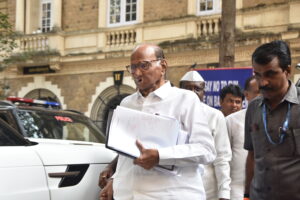 Mumbai:Nationalist Congress Sharad Pawar party today call new elected MLA ‘s meeting they have party chief, Sharad Pawar with party working president, Supriya Sule will arrive at party state head Office, Ballerd Estate in Mumbai on Sunday December 1, 2024. Pic: Sandeep Anandrao Mahankal