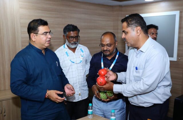 राज्याचे पणन व राजशिष्टाचार मंत्री तथा महाराष्ट्र राज्य कृषी पणन मंडळाचे अध्यक्ष जयकुमार रावल यांनी काल, दि.30 डिसेंबर रोजी महाराष्ट्र राज्य कृषी पणन मंडळाच्या वाशी येथील सुविधांना भेट दिली. या भेटीवेळी पणन व राजशिष्टाचार मंत्री रावल यांनी सुविधेवर सुरू असलेले कामकाज याबाबतीत अधिकाऱ्यांसमवेत चर्चा केली. यावेळी कृषी पणन मंडळाचे सरव्यवस्थापक विनायक कोकरे व सुविधेवर काम करीत असलेले अधिकारी उपस्थित होते.