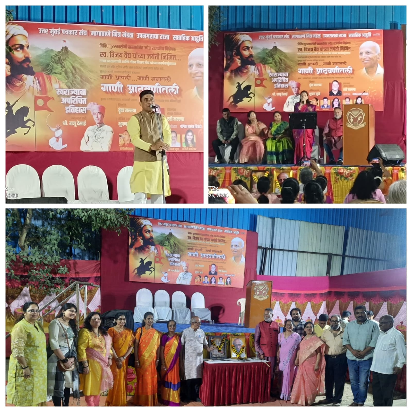 ख्यातनाम लेखक आणि संगीत संयोजक रवि मल्ल्या यांनी नंदकुमार मोरे, वसंत सावंत, राजा खोपकर, राजू देसाई, हेमंत पाटकर, सुभाष देसाई, सचिन वगळ, विजय मडव, मागाठाणे मित्र मंडळ आणि उपनगरचा राजाचे सर्व पदाधिकारी, दादासाहेब शिंदे, वसंत तांबे, हंबीरराव यांची भूमिका साकार करणारे अभिनेते अनिल गवस, आयर्लंडचे पंतप्रधान लिओ वराडकर यांचे बंधू शिरीष वराडकर, अवयवदान चळवळीचे कार्यकर्ते प्रवीण वराडकर, मिलिंद कोळवणकर, आदींच्या उपस्थितीत सरस्वती देवी आणि विजय वैद्य यांच्या प्रतिमेस पुष्पहार अर्पण करून दीप प्रज्वलन केल्यानंतर वायंगणकर साई स्पोर्ट्सच्या बालगोपाळांनी सरस्वती वंदना सादर केली. प्रा. नयना रेगे यांनी आपल्या खुमासदार शैलीत विजय वैद्य यांचा प्रदीर्घ जीवनपट उलगडून दाखविला. भक्ती सावंत यांनी तयार केलेली विजय वैद्य आणि राजू देसाई यांच्या निवडक छायाचित्रांची सुंदर अशी चित्रफीत सादर केली. संगीत संयोजक रवि मल्ल्या यांनी त्यांच्या वृंदा मल्ल्या, संगीता मिरकर, उमेश लाड, रश्मी मुळे, भूषण मुळे, राजन पट्टण, मंजिरी आजरेकर या कलाकारांच्या वाद्यवृंदासह सादर केलेली आठवणीतली गाणी, शिवचरित्राचे गाढे अभ्यासक शिवभक्त आणि रायगड या छत्रपती शिवाजी महाराज यांच्या राजधानीला पाचशे एक वेळा भेट देऊन घराघरात, मनामनात छत्रपती शिवाजी महाराज यांचा खराखुरा इतिहास पोहोचविणारे राजू देसाई यांचे खड्या आवाजातील स्वराज्याचा अपरिचित इतिहास सादर करुन तमाम उपस्थितांना एकाच जागी खिळवून ठेवले. उत्तर मुंबई पत्रकार संघ, मागाठाणे मित्र मंडळ, उपनगराचा राजा आणि साप्ताहिक आहुति आयोजित या कार्यक्रमात गेली ४२ वर्षे विजय वैद्य यांनी अखंड चालविलेल्या जय महाराष्ट्र नगर वसंत व्याख्यानमालेच्या भव्य आणि आकर्षक व्यासपीठावर कला महर्षी उदय पै यांच्या ॲड आर्टस् ने बनविलेला सप्तरंगी भव्य फलक सर्वांनाच भुरळ पाडत होता. सुमारे तीन दिवसांच्या व्याख्यानमालेचा साडेतीन तासात रसिकांना, हितचिंतकांना सादर करण्यात आलेला भरगच्च नजराणा म्हणजे एक मेजवानीच होती. याद्वारे विजय वैद्य यांचा वावर अद्यापही होत असल्याचे जाणवत होते. विनोद घोसाळकर, मंगलाताई खाडिलकर, विलास पोतनीस, चंद्रशेखर ठाकूर, रेखा बोऱ्हाडे, अभिनेते अनिल गवस, गुजराती अभिनेते गुजराती रंगभूमीवरील अभिनेत्री जिग्ना हितांशु वैद्य, भक्ती सावंत, रेवा राजेश देसाई, रोहिणी चौगुले, शुभदा शिंदे, अमित मोरे, दिनेश विचारे, अभिलाष कोंडविलकर, चंद्रकांत सावंत, संजय जोजन, नंदकुमार शिवलकर, विनय पाटील, मीना नाईक, समीक्षक निलीमा जांगडा, मार्मिकचे स्तंभलेखक योगेंद्र ठाकूर, वासुदेव नार्वेकर , सत्यवान ताठरे, प्रमोद तेंडुलकर, उन्मेष मळेकर, श्याम कदम, भरत घाणेकर, सुरेश परांजप
