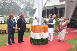 मुंबई, दि. २६ : विधान भवन, मुंबई येथे आज भारतीय प्रजासत्ताक दिनाच्या ७६व्या दिनानिमित्त विधानपरिषदेचे सभापती राम शिंदे यांच्या हस्ते ध्वजारोहण करण्यात आले. यावेळी विधानपरिषदेच्या उपसभापती डॉ. नीलम गोऱ्हे यांची प्रमुख उपस्थिती होती. यावेळी, विधानमंडळ सचिवालयाचे सचिव (1) (कार्यभार) जितेंद्र भोळे, सचिव (2) (कार्यभार) विलास आठवले यांच्यासह अधिकारी आणि कर्मचारी मोठ्या संख्येने उपस्थित होते.