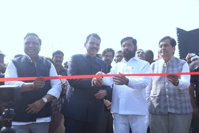 मुंबई किनारा रस्ता प्रकल्प आणि वरळी-वांद्रे सागरी सेतू यांना जोडणार्या उत्तर वाहिनी पुलाचे लोकार्पण मुख्यमंत्री देवेंद्र फडणवीस उपमुख्यमंत्री एकनाथ शिंदे यांच्या हस्ते करण्यात आले.