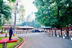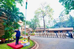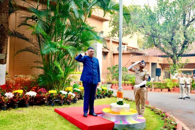 Home मुंबई मुख्यमंत्री देवेंद्र फडणवीस यांनी ‘वर्षा’ या शासकीय निवासस्थानी राष्ट्रध्वजवंदन मुंबईराजकीय मुख्यमंत्री देवेंद्र फडणवीस यांनी ‘वर्षा’ या शासकीय निवासस्थानी राष्ट्रध्वजवंदन 174 0 भारतीय प्रजासत्ताक दिनानिमित्त मुख्यमंत्री देवेंद्र फडणवीस यांनी ‘वर्षा’ या शासकीय निवासस्थानी राष्ट्रध्वजवंदन केले. यावेळी मुख्यमंत्र्यांनी उपस्थित अधिकारी व कर्मचाऱ्यांसह राज्यातील जनतेला प्रजासत्ताक दिनाच्या शुभेच्छा दिल्या.