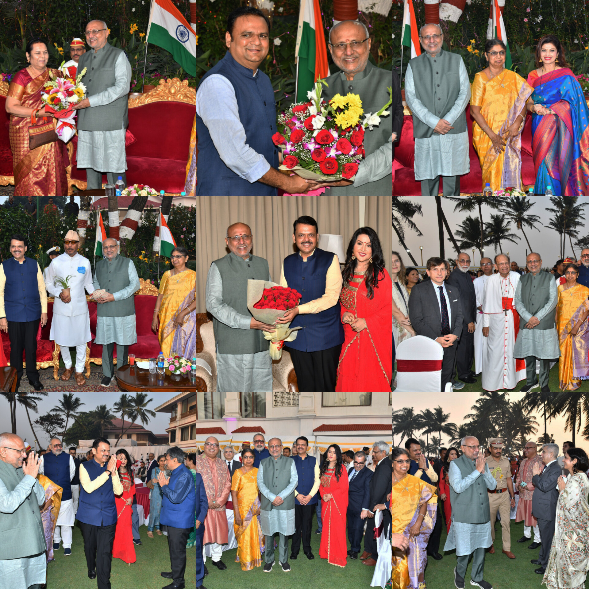 Spouse of the Governor, Smt Sumathi Radhakrishnan, Chief Minister Devendra Fadnavis and Amruta Fadnavis, Union Minister of Textiles Giriraj Singh, Speaker of Legislative Assembly Rahul Narwekar, Deputy Speaker of Legislative Council Dr. Neelam Gorhe, Chief Justice of Bombay High Court Justice Alok Aradhye, Business leaders Ashok Hinduja, Prakash Hinduja, Niranjan Hiranandani, MLA Amin Patel, Vice-Chancellor of University of Mumbai Dr. Ravindra Kulkarni, SNDT Women’s University’s Vice-Chancellor Dr. Ujjwala Chakradeo, HSNC University’s Vice-Chancellor Dr. Hemlata Bagla, actor Jackie Shroff, playback singer Udit Narayan, actor Varsha Usgaonkar, Chief Secretary Sujata Saunik, Police Commissioner Vivek Phansalkar, Diplomats from various countries in Mumbai, outgoing Archbishop of Mumbai Cardinal Oswald Gracias, new Archbishop John Rodrigues and dignitaries from various fields were present.
