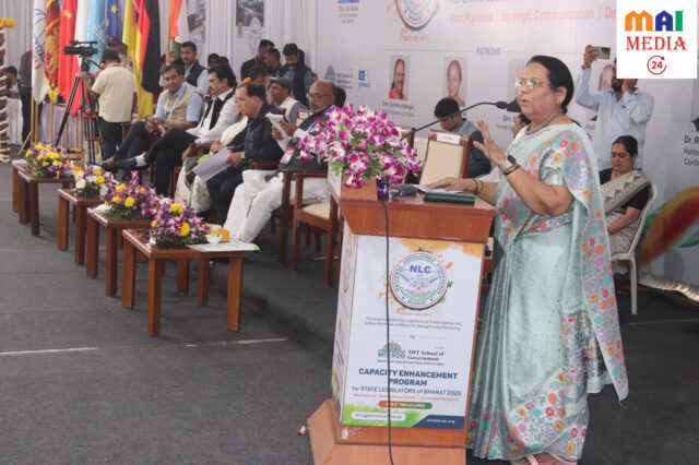 पुणे, दि. ८ : एम आय टी वर्ल्ड पीस युनिव्हर्सिटी, पुणे येथे आयोजित ‘क्षमता बळकटीकरण समारंभ, भारत’ या कार्यक्रमात महाराष्ट्र विधानपरिषद उपसभापती डॉ. नीलम गोऱ्हे यांनी ‘विधीमंडळात यशस्वी होण्यासाठी ऊत्तम संसदीय आयुधे’या विषयावर मार्गदर्शन केले. यावेळी त्यांनी आमदार व लोकप्रतिनिधींना संसदीय कार्यपद्धती, प्रभावी कायदेविषयक प्रक्रिया आणि जनहिताच्या मुद्द्यांवरील प्रभावी सादरीकरण यासंदर्भात महत्वपूर्ण माहिती दिली.