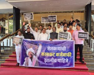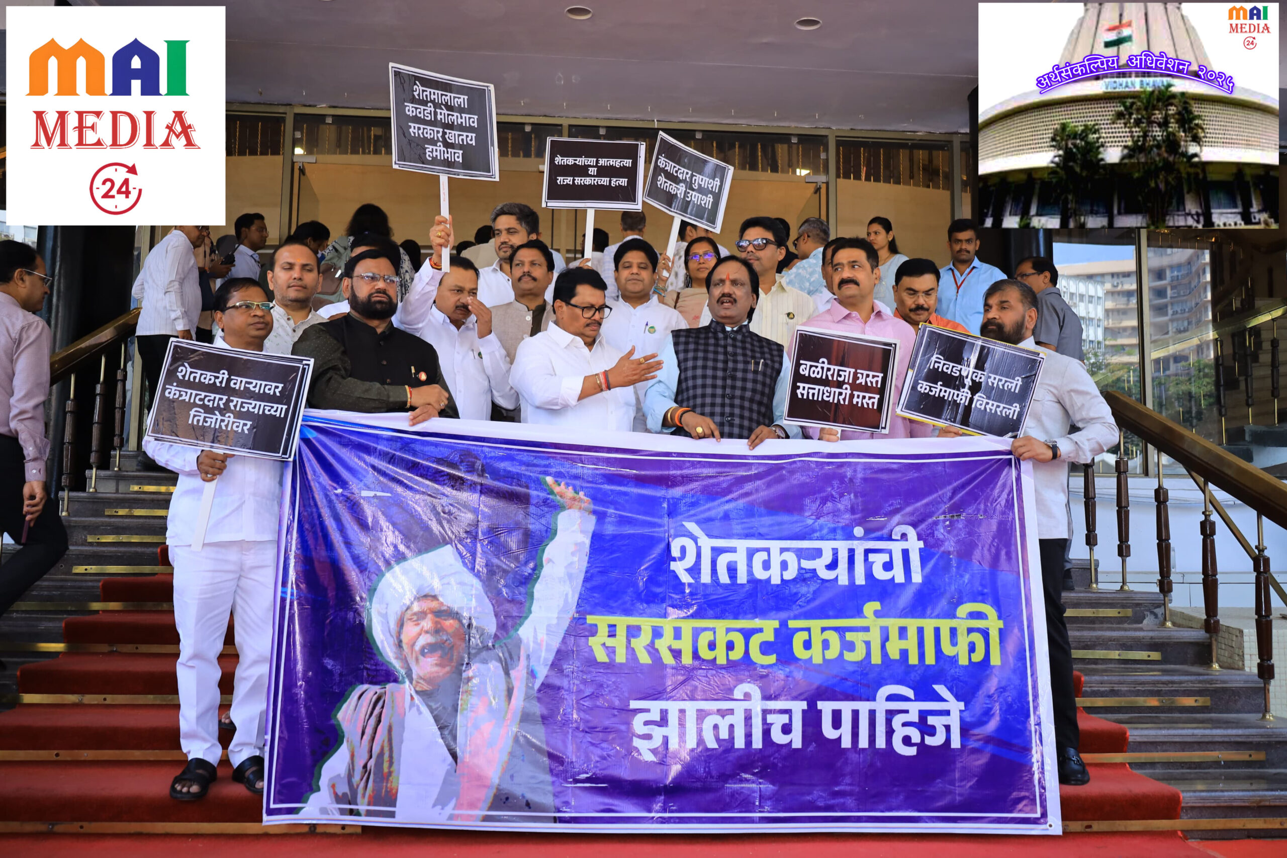महायुती सरकारने सादर केलेल्या अर्थसंकल्पात त्यांना शेतकऱ्यांचा विसर पडला आहे. शेतकऱ्यांच्या कर्जमाफीबाबत कोणतीही घोषणा सरकारने केली नाही. नैसर्गिक आणि सुलतानी संकटाने त्रस्त असलेल्या शेतकऱ्यांची सरसकट कर्जमाफी झालीच पाहिजे, अशा घोषणा देत शेतकऱ्यांचा आवाज होऊन आज महाविकास आघाडीच्या आमदारांनी विधिमंडळ परिसर दणाणून सोडला.