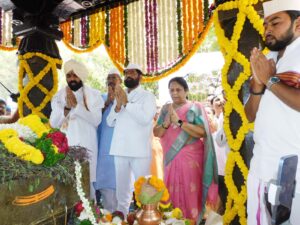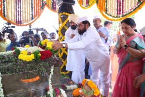 तुळापूर – स्वराज्यरक्षक धर्मवीर श्रीमंत संभाजी महाराज यांच्या 336 व्या पुण्यतिथी पुण्यस्मरण दिनानिमित्त उपमुख्यमंत्री एकनाथ शिंदे आणि विधान परिषद उपसभापती डॉ. नीलम गोऱ्हे यांनी वढू-तुळापूर येथील संभाजी महाराजांच्या स्मारकाला भेट देऊन अभिवादन केले.