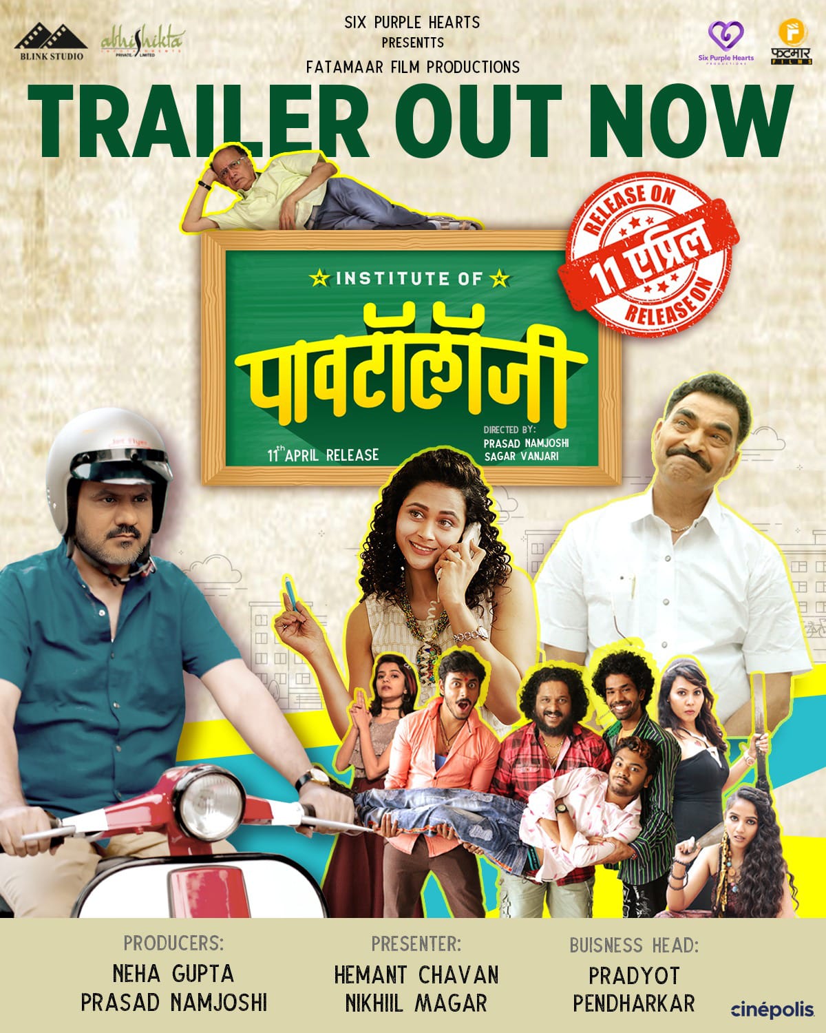 संतोष शिंत्रे यांनी ‘इन्स्टिट्यूट ऑफ पावटॉलॉजी’ची कथा लिहिली असून, तर प्रसान नामजोशी यांनी दिग्दर्शनासोबतच पटकथा, संवाद आणि गीतलेखनसुद्धा केले आहे. सयाजी शिंदे, गिरीश कुलकर्णी, ज्येष्ठ अभिनेते दिलीप प्रभावळकर, शशांक शेंडे, दीप्ती देवी, संदीप पाठक, पार्थ भालेराव, देवेंद्र गायकवाड, अपूर्वा चौधरी, प्रगल्भा कोळेकर, कृतिका देव, हरीश थोरात, सुयश झुंजुरके, छाया कदम, विजय निकम, शिवराज वाळवेकर आदी कलाकारांच्या या चित्रपटात भूमिका आहे. संगीतकार विजय नारायण गवंडे यांचे सुरेल संगीत या चित्रपटाची जमेची बाजू ठरणारे आहे. सागर वंजारी यांनी कार्यकारी निर्मात्याची जबाबदारी सांभाळर संकलनही केले आहे. कला दिग्दर्शन निलेश गोरक्षे यांनी केले असून, मंदार कमलापूरकर यांनी ध्वनी आरेखन केले आहे. छायांकन गिरीश जांभळीकर यांचे, तर व्हीएफएक्स अमिन काझी यांचे आहेत. रश्मी रोडे यांनी वेशभूषा, श्रीकांत देसाई यांनी रंगभूषा केली असून, प्रशांत गाडे आणि सुमित कुलकर्णी यांनी निर्मितीव्यवस्था सांभाळली आहे.