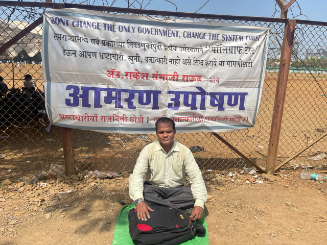 मुंबई / प्रतिनिधी : भारतात सध्या सुरू असलेल्या राम राज्यात निवडणुकांचे जोरदार वारे वाहू लागले आहेत. मात्र राम राज्यात होणाऱ्या सर्व प्रकारच्या निवडणुकांपूर्वी प्रत्येक उमेदवाराने आपली पोलिग्राफ टेस्ट देऊन आपण भ्रष्टाचारी, खुनी, बलात्कारी नाही असे सिध्द करावे. या मागणीसाठी ऍड राकेश राऊळ हे गेल्या चाळीस दिवसांपासून मुंबईतल्या आझाद मैदानात आमरण उपोषणास बसले आहेत.