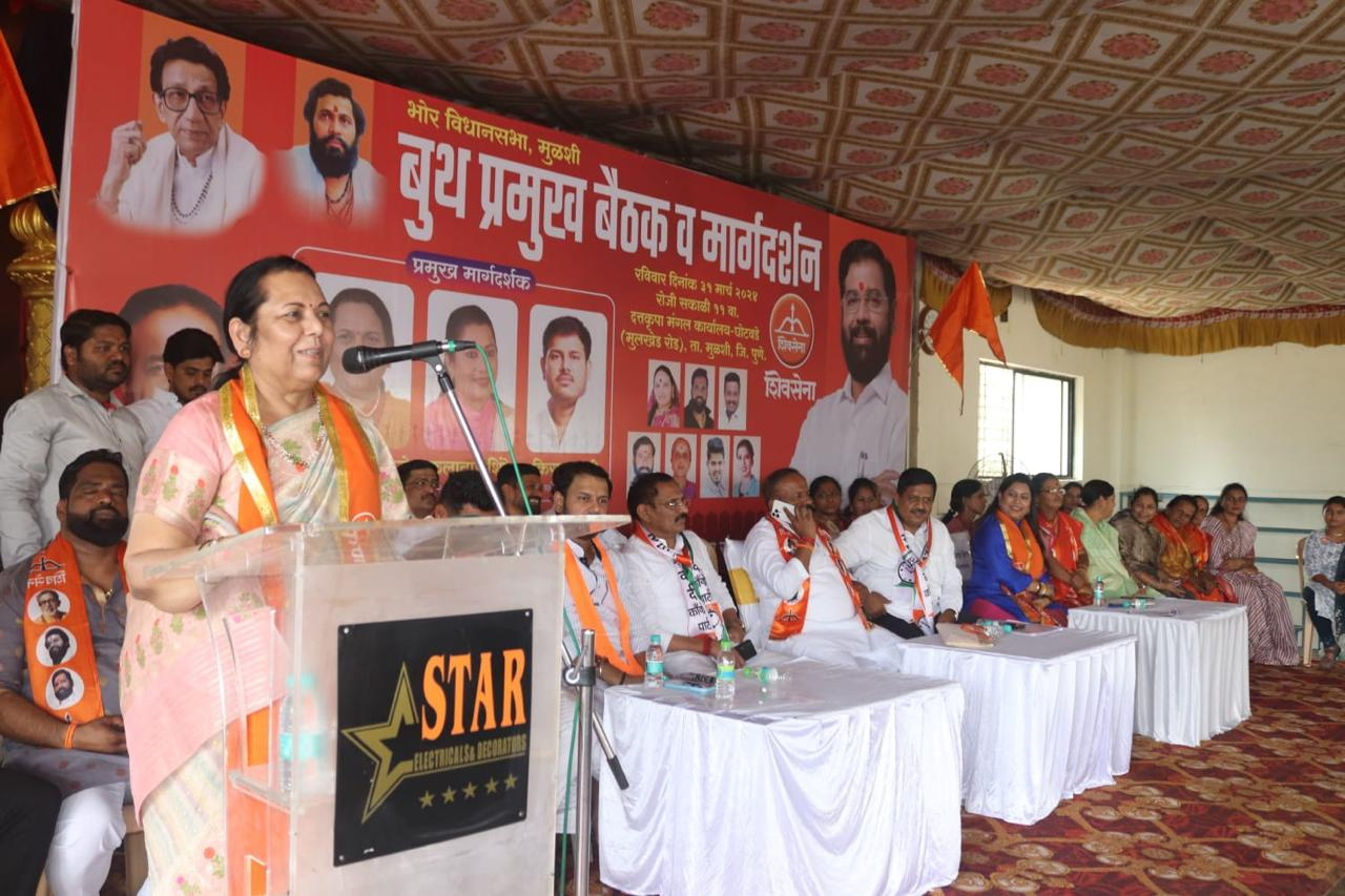 भोर विधानसभा, मुळशी बुथ प्रमुख बैठक व मार्गदर्शन मेळावा रविवार दिनांक ३१ मार्च २०२४ रोजी घोटवडे ता. मुळशी येथे आयोजित करण्यात आला होता. या प्रसंगी शिवसेना नेत्या डॉ. नीलम गोऱ्हे बोलत होत्या. प्रसंगी शिवसेना उपनेत्या कलाताई शिंदे, युवासेना सचिव किरण साळी, मेळाव्याच्या आयोजक जिल्हा प्रमुख बाळासाहेब चांदेरे, राष्ट्रवादी काँग्रेसचे बाबुराव चांदेरे,  विविध शिवसेना पदाधिकरी, महीला कार्यकर्ते, बूथ प्रमुख मोठ्या संख्येने उपस्थित होते.