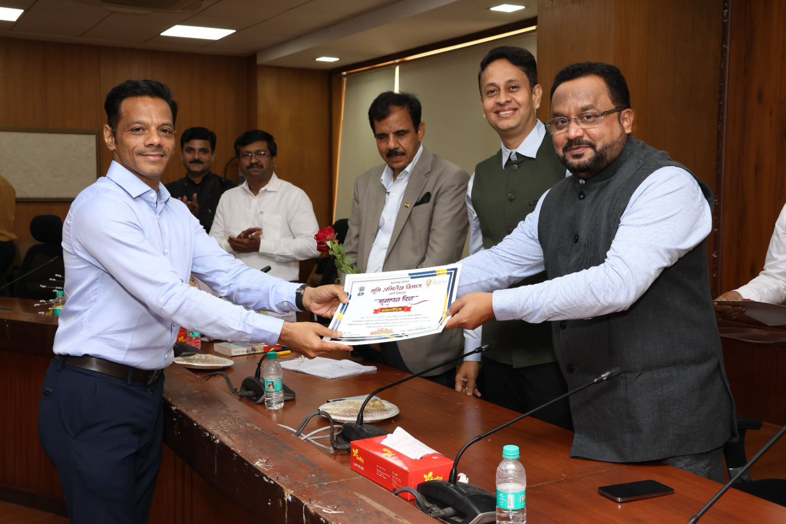 भूमापन दिनाच्या या विशेष सोहळ्याचे औचित्य साधून, भूमी अभिलेख खात्यातील सेवानिवृत्त अधिकारी-कर्मचारी आणि मागील वर्षी उत्कृष्ट सेवा बजावणाऱ्या अधिकारी व कर्मचाऱ्यांचा प्रमाणपत्र देऊन सत्कार करण्यात आला.